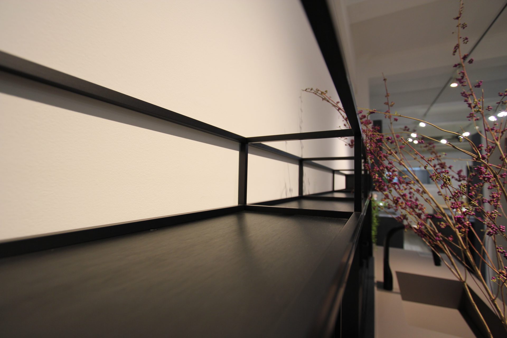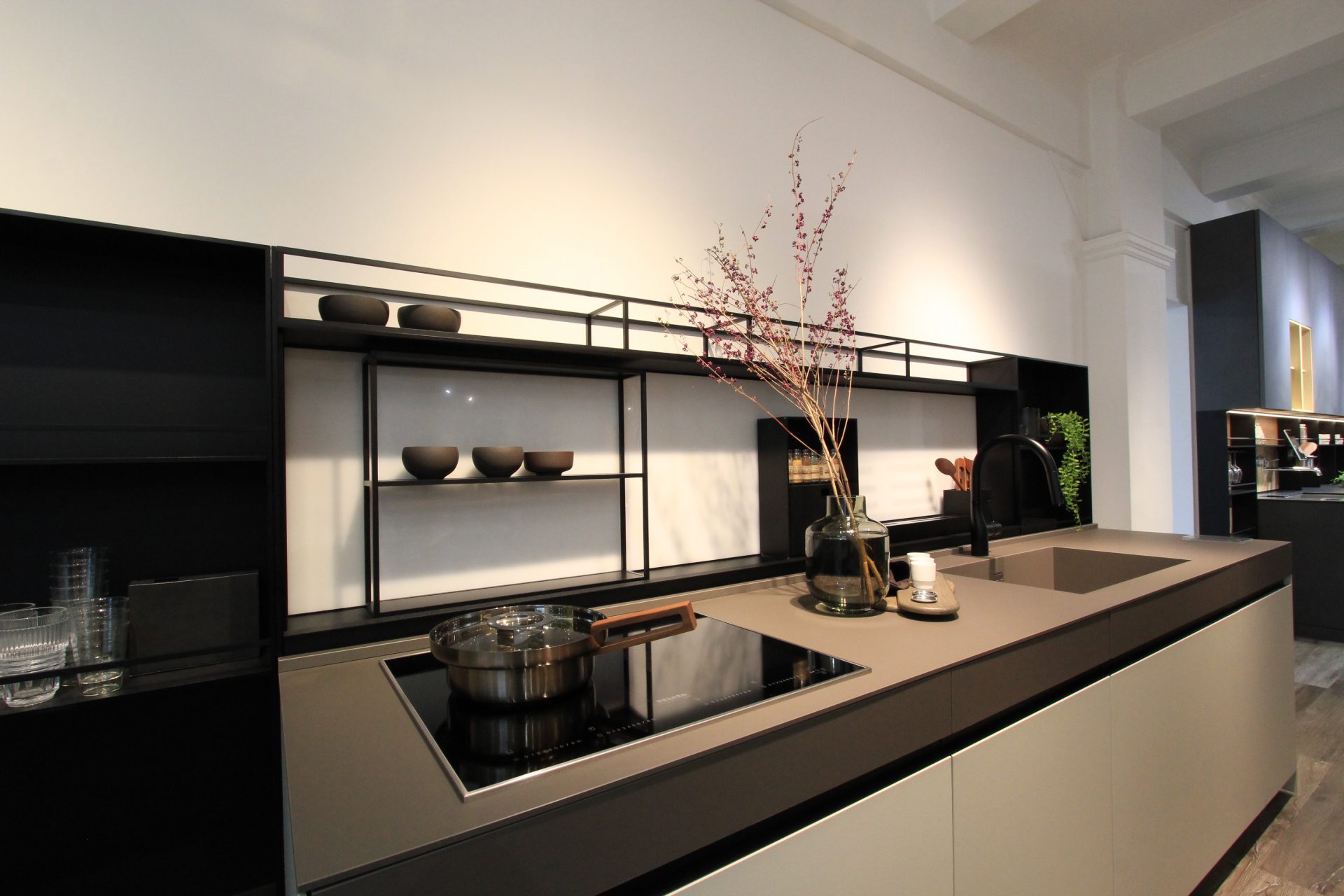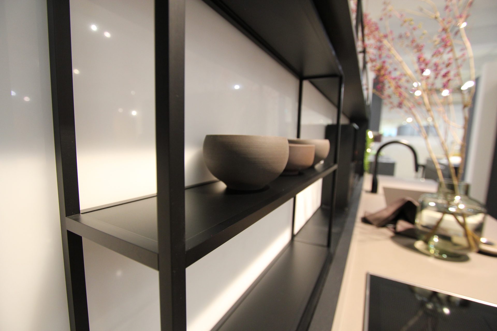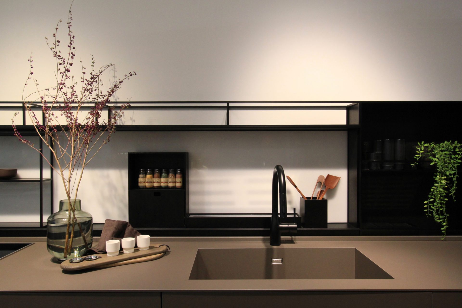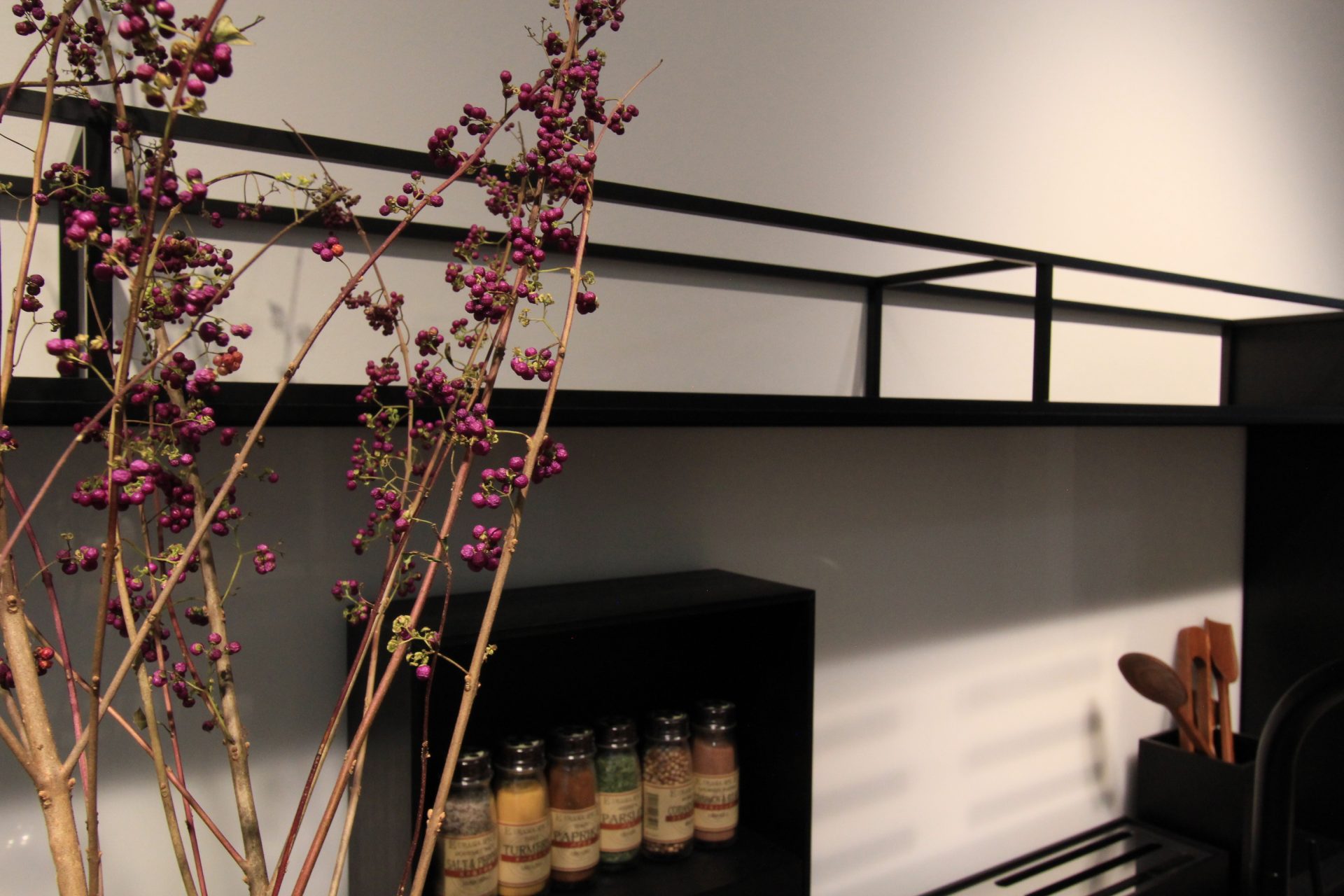 キッチンカウンター上の黒い収納は”Sipario(シパリオ)”といいます。Seiモデルのみに付けられるアクセサリーで、ブラックアルミでできています。