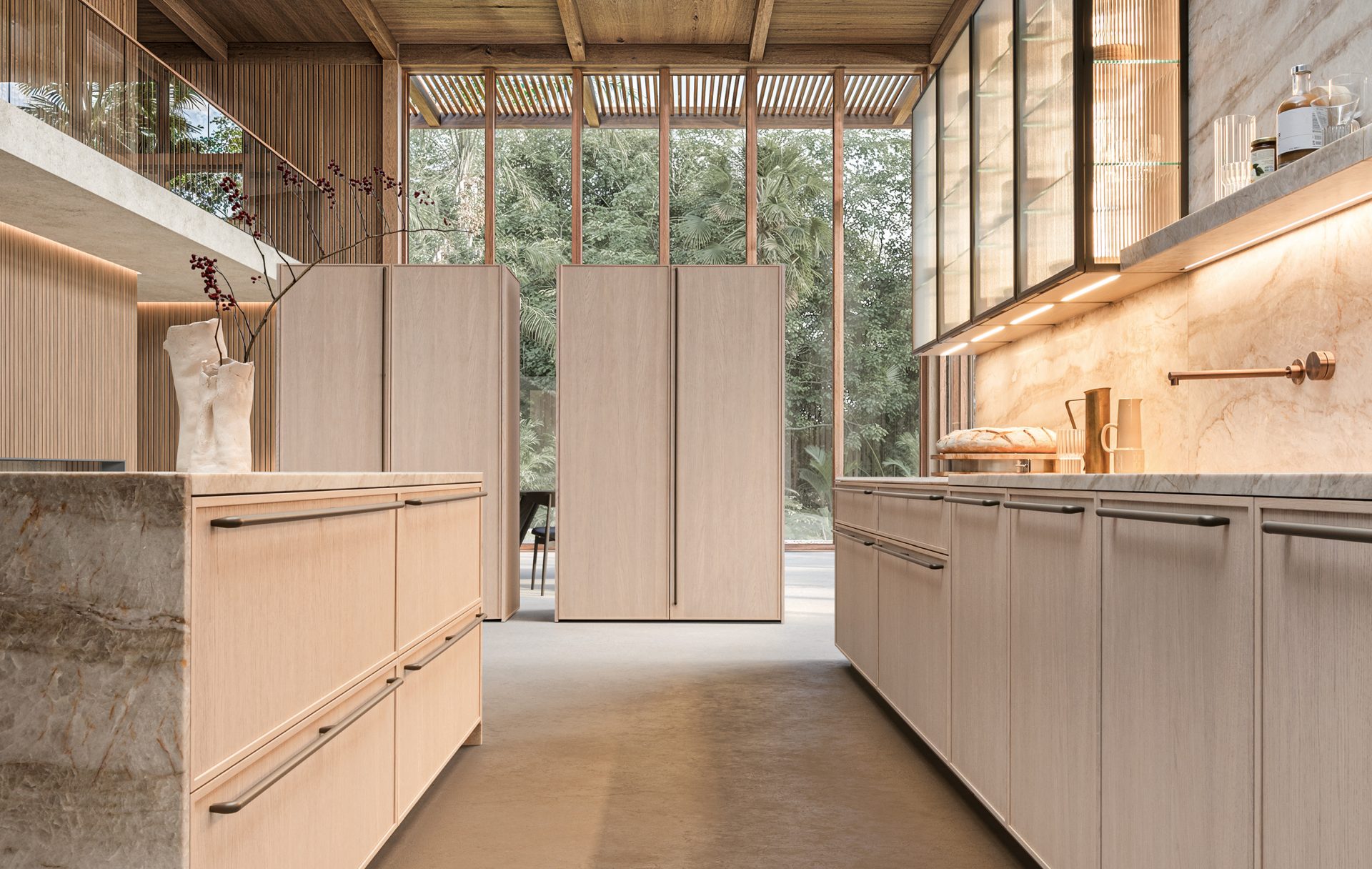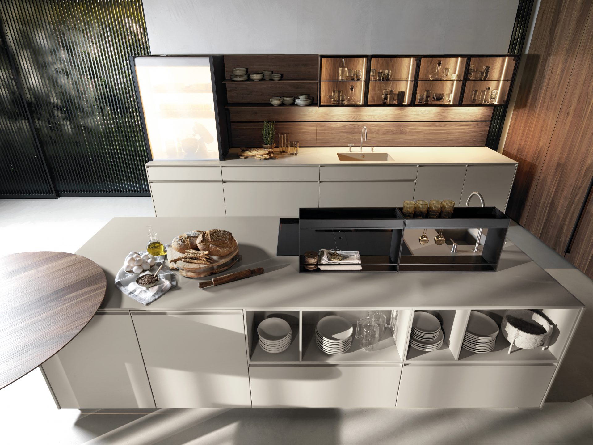 minotti cucine(ミノッティ・クッチーネ)さんなどが全面天然石仕上げのキッチンを出されています。