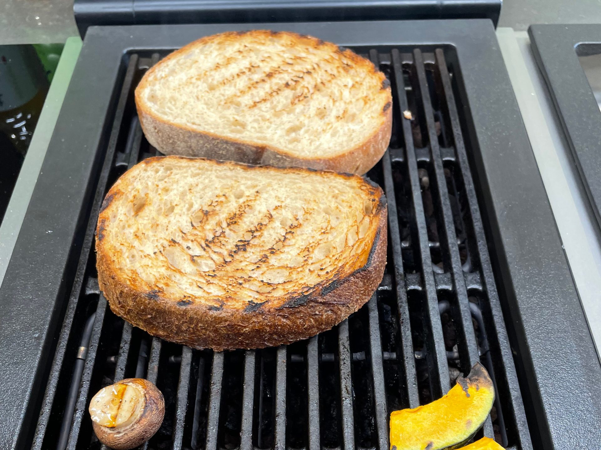 バーベキューグリルで焼いたパンは、周りがカリカリでパンの香ばしさが際立っていました。