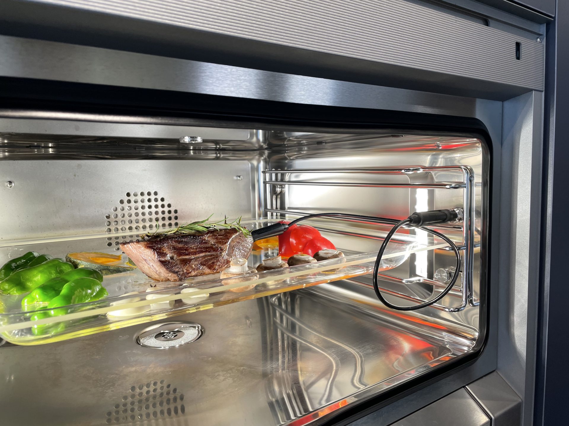 GAGGENAUのオーブンにはお肉内部の温度を1℃刻みで計測し、加熱をコントロールしてくれるミートセンサーが付いています。