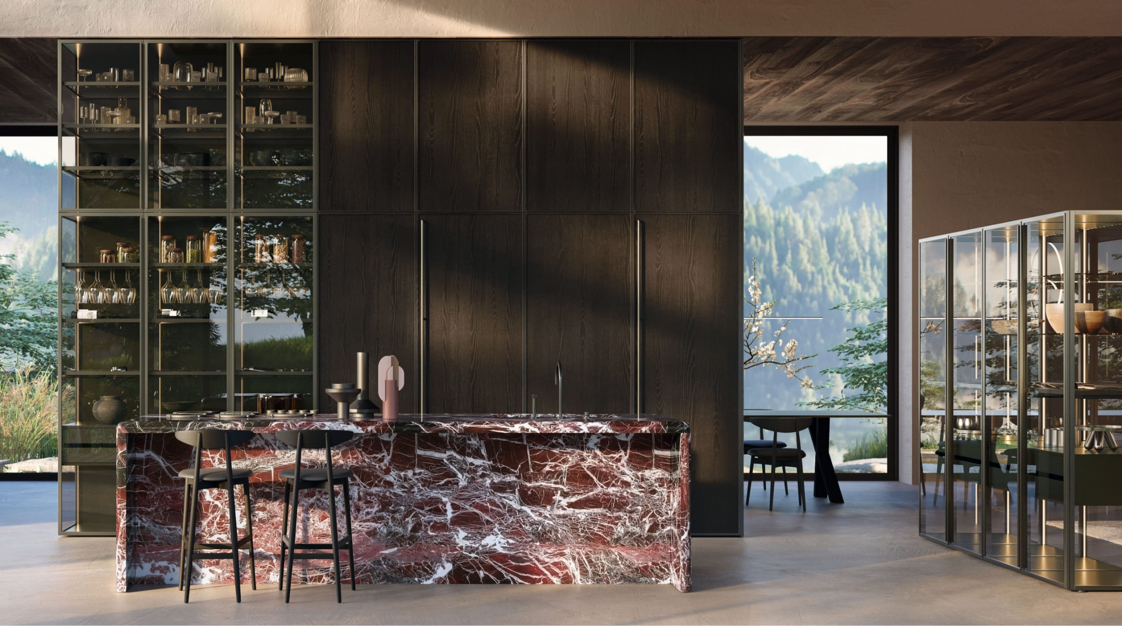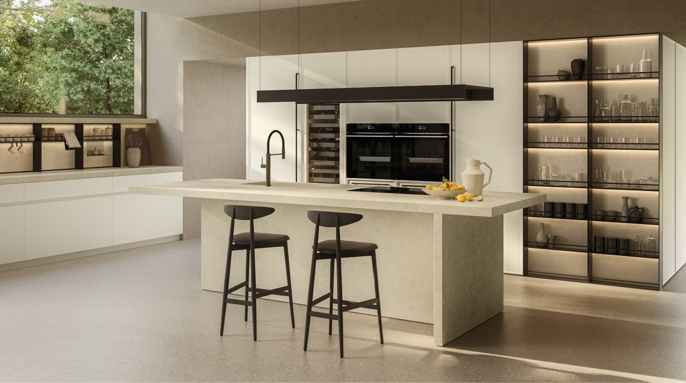 Margo is inspired by an image of rigour and symmetry. The name, from the Latin margo-marginis, emphasises the characteristic, thin 14 mm perimeter frame that runs along its ends, focusing attention on the know-how with which it was made.